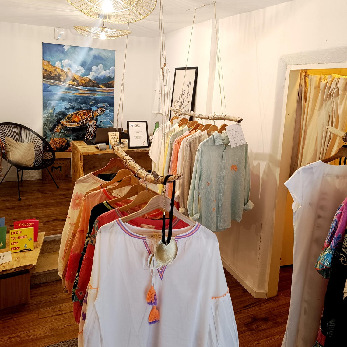 * The iconic Pomalo linen shirts — unisex, printed directly on the island.A destination for those seeking something truly special and magical.
